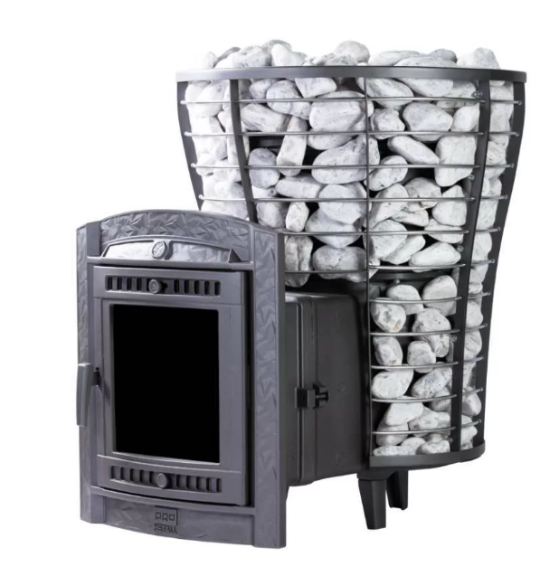 Печь для бани Атмосфера имеет комбинированный корпус из сетки и ламелей Змеевик. Особенность модели - открывающаяся дверь с ламелями. Это оригинальное решение обеспечивает быстрый прогрев парной. В печи предусмотрена внутренняя закрытая каменка, изготовленная из нержавеющей стали AISI 439. При добавлении воды на камни, она превращается в мелкодисперсный качественный «правильный» пар, т.к температура камней предельно высока. Панорамная чугунная дверка со стеклом шириной 315 мм в данной модели печи позволит наблюдать за огнем из комнаты отдыха. Предусмотрена система "чистое стекло". Дверцу можно перевесить, для открывания справа или слева.
