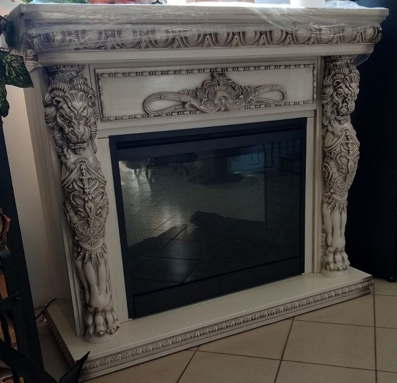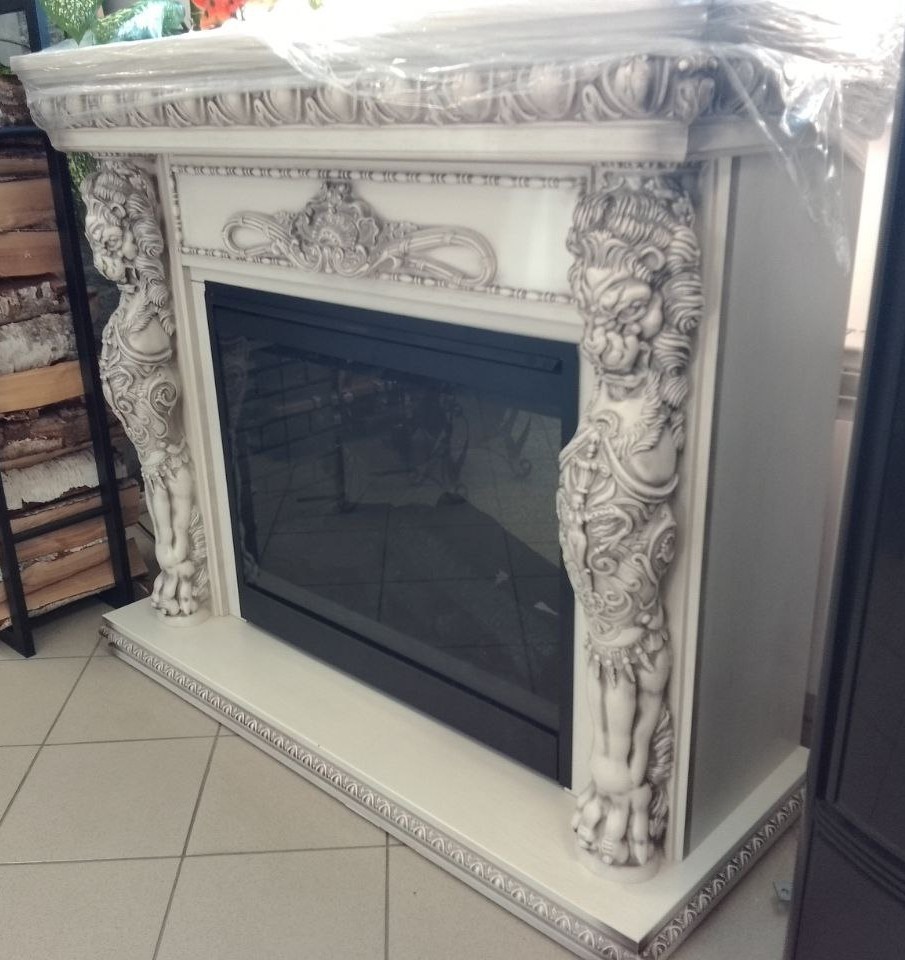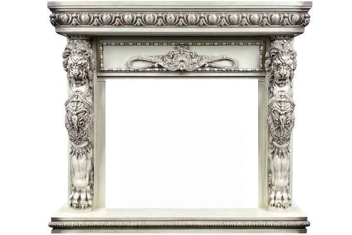 Портал Windsor – элегантная модель с богатым ярким декором, выполненная из высококачественных материалов. Колонны украшены образами необычных мифических существ с львиными головами, размещенными фронтально. Зона над очагом декорирована изысканным резным орнаментом
