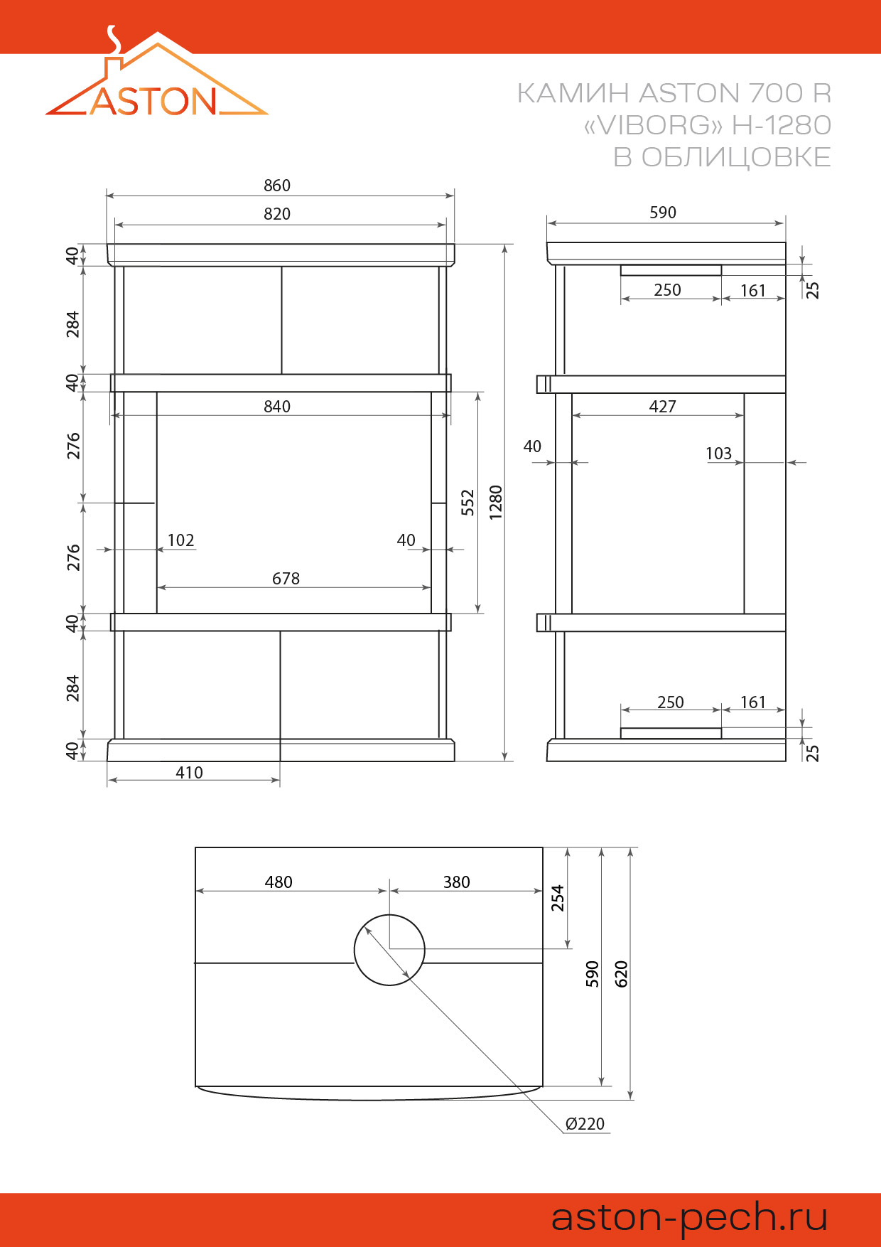Камин АСТОН (ASTON) 700 R «ВЫБОРГ» Н-1280