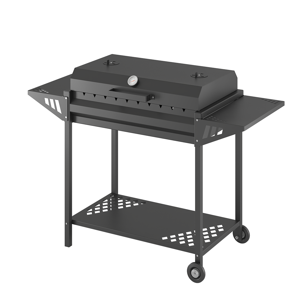 Боковые полки предназначаются для размещения посуды, запаса продуктов или аксессуаров по уходу за мангалом.