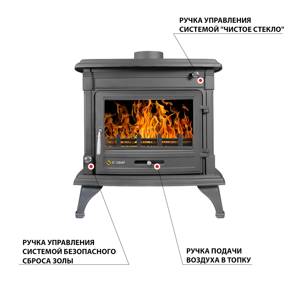 Печь-камин Везувий АST-13К "Антрацит" изготовлена из качественного чугуна с толщиной стенки 8-10 мм.