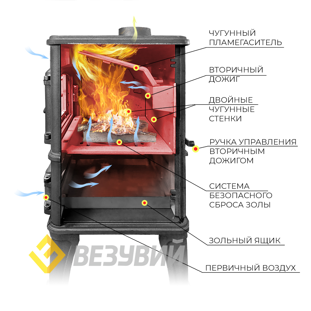 Чугунные печь-камины Российского бренда Везувий (Россия) – это надежный, долговечный и многофункциональный отопительный прибор.