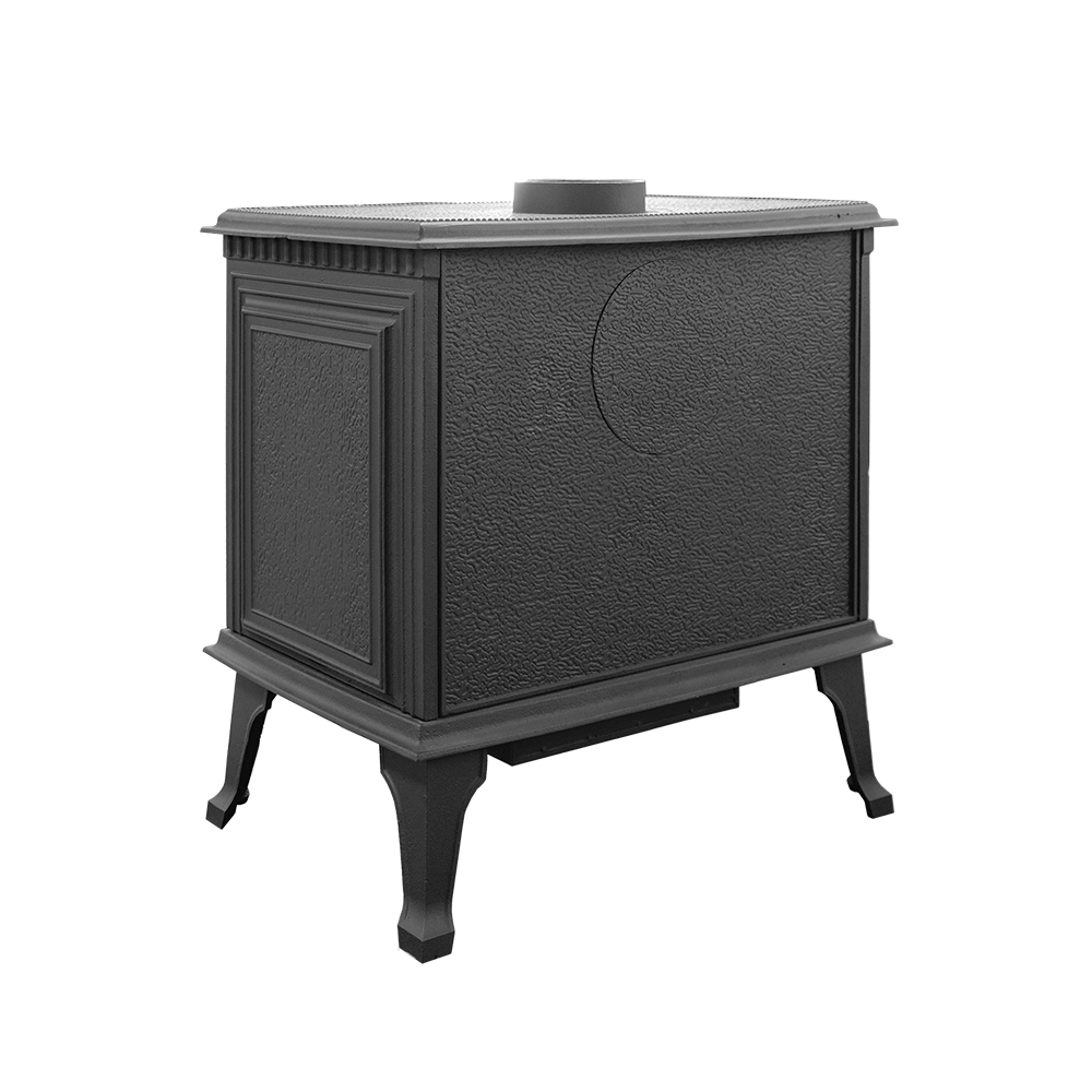 Патрубок дымохода – универсальный, со сменным положением. Он может быть установлен сверху или сзади в зависимости от размещения печи в помещении.
