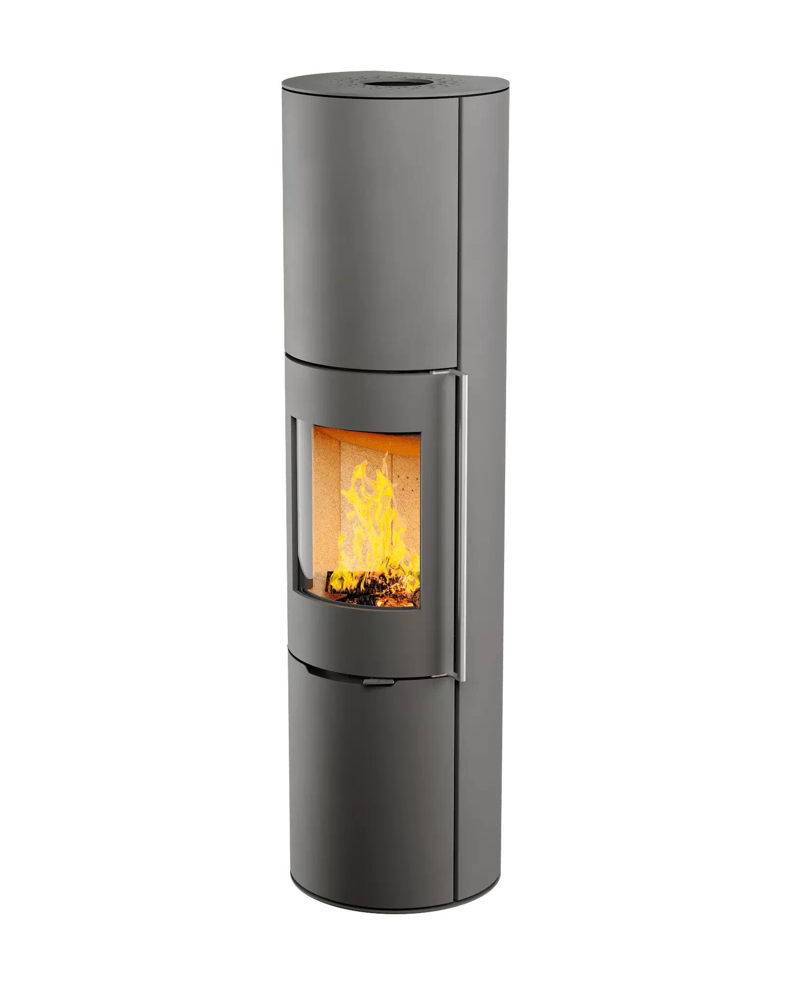 Топка отдает тепло через стекло и стальной корпус. Через стекло поступает порядка 20% тепла в виде лучистой, мягкой, расслабляющей энергии. Регуляторы подачи воздуха обеспечивают плавное изменение процесса горения от самого минимального до бушующего пламени. Герметичное закрывание дверки улучшает качество горения и регулируемость огня. Каждую модель печи-камина серии R1 можно укомплектовать каменной крышкой, плюс 10000 руб. к основной цене печи.
