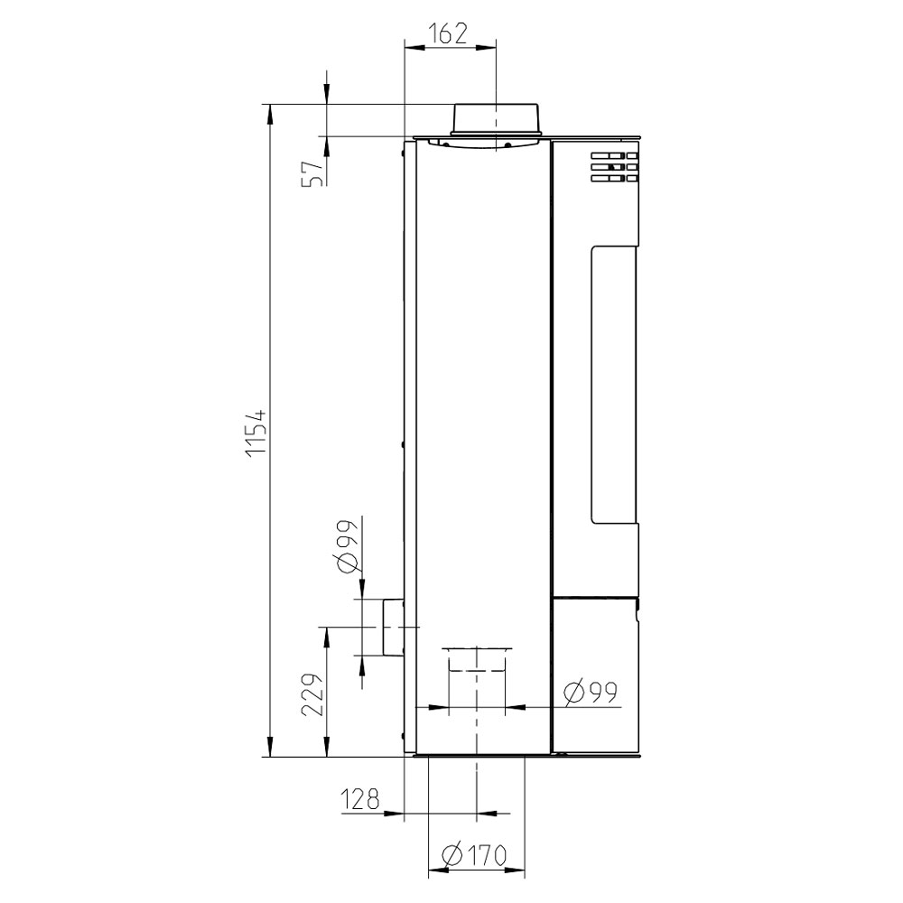 Печь выполнена из высококачественной стали, имеет конвекционный кожух для быстрого нагрева помещения, большое полукруглое стекло. Печь может быть окрашена в серый (классический) или черный цвет. За счет максимально плотного прилегания дверки к корпусу печи, топочная камера герметична, что исключает подсос воздуха. Ручка открывания двери аккуратно расположена снизу и имеет плавный мягкий ход. Внутри топочная камера футирована вермикулитовыми пластинами. Они отражают огонь, тем самым повышают температуры внутри топки для максимально полного сгорания топлива. С задней стороны печи предусмотрен патрубок притока воздуха на горение. Печь прекрасно регулируется и может работать в режиме медленного горения.