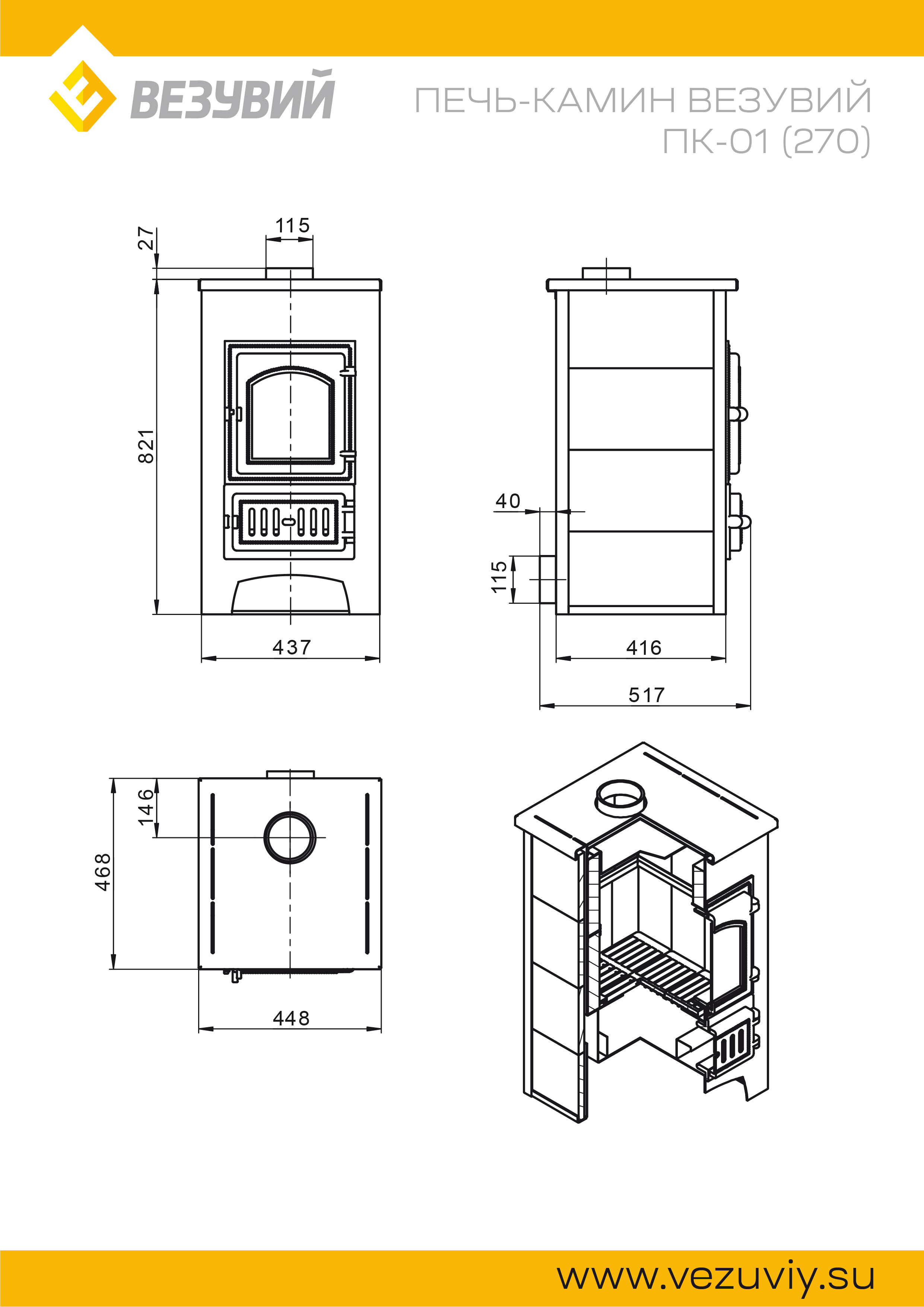 Печи-камины Везувий изготовлены из высококачественной конструкционной стали. Топка защищена шамотом, который легко заменим. Чугунная топочная дверка с жаростойким стеклом. Все печи-камины Везувий имею боковые керамические вставки или вставки из натурального камня.