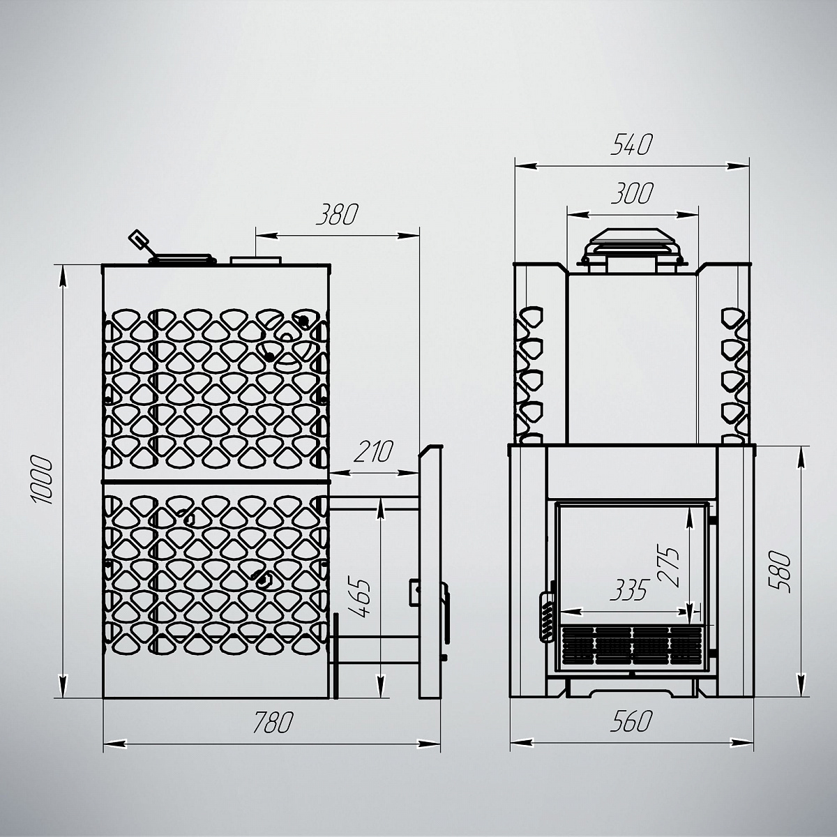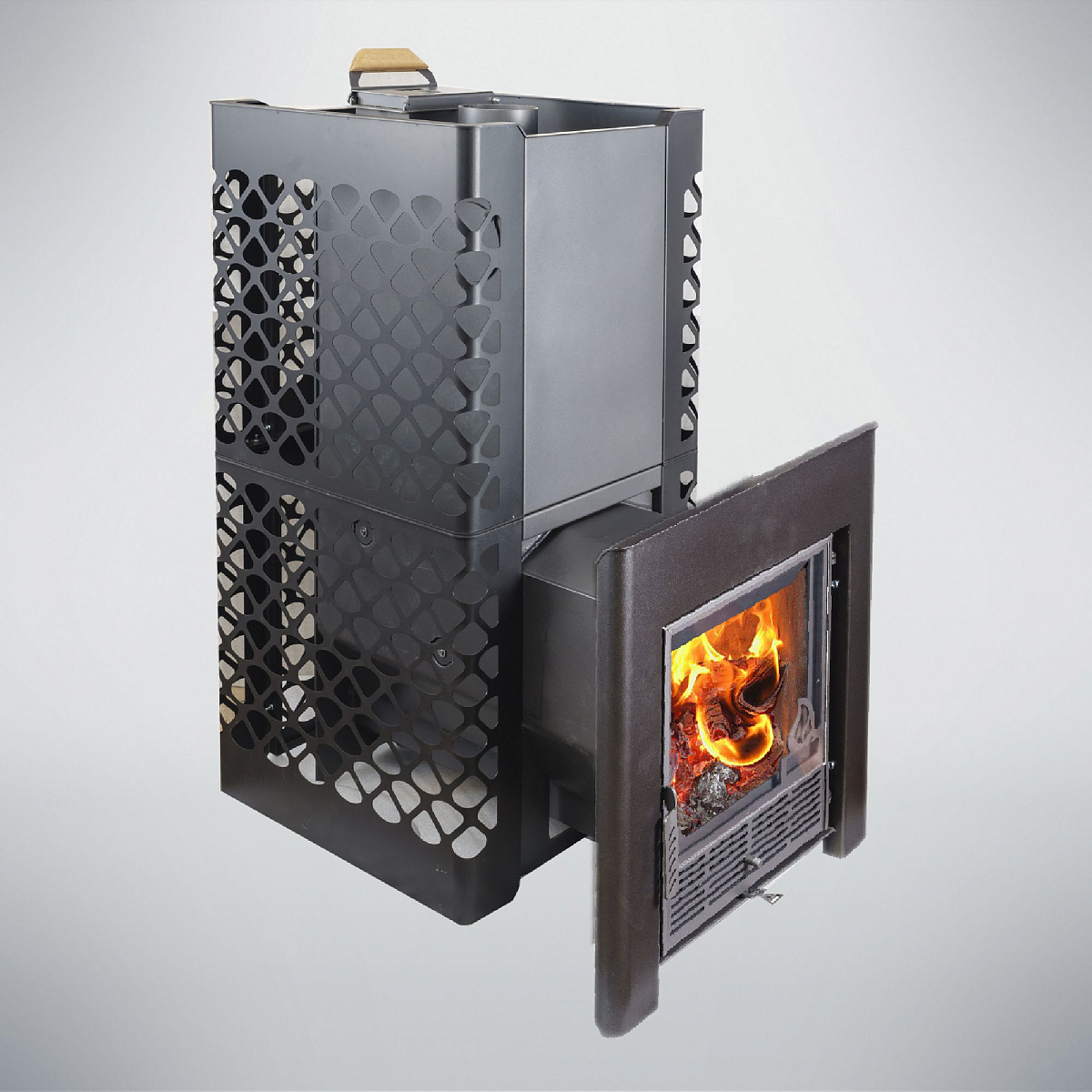 Максимальный нагрев камня: Закрытая каменка позволяет нагревать камни до 600 градусов, обеспечивая интенсивное прогревание парной и создание уникальной атмосферы.