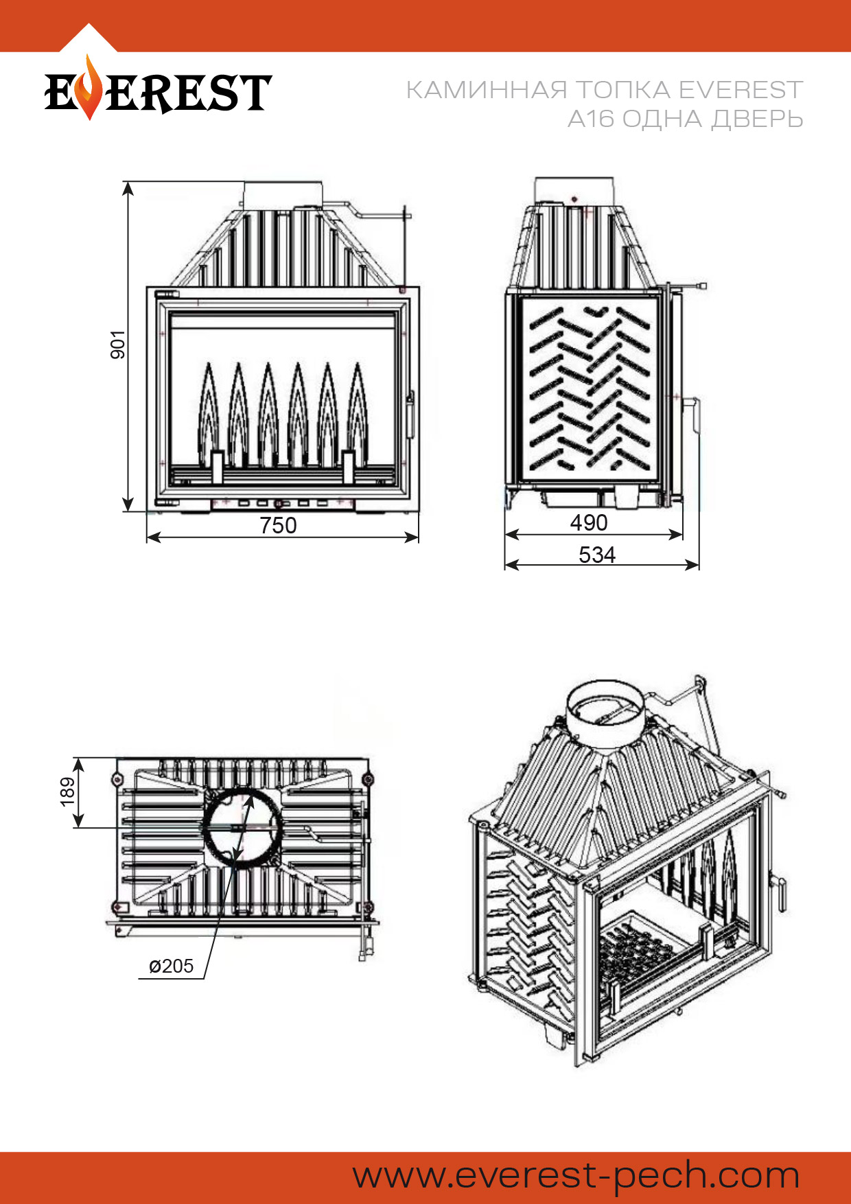 Каминная топка ЭВЕРЕСТ (EVEREST) A16H имеет топочную дверь установленную как с передней , так и с задней части
