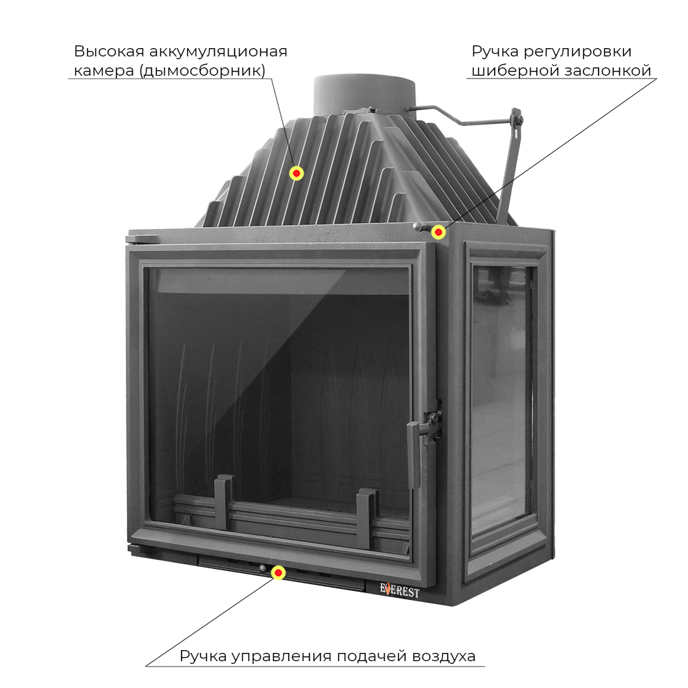 Каминная топка ЭВЕРЕСТ (EVEREST) A16L имеет с правой стороны дополнительное остекление