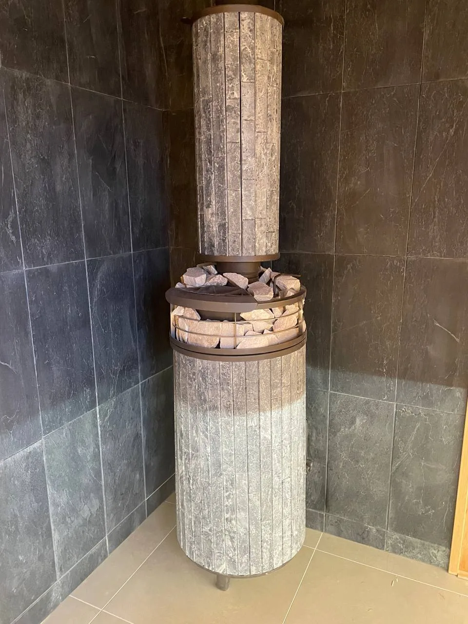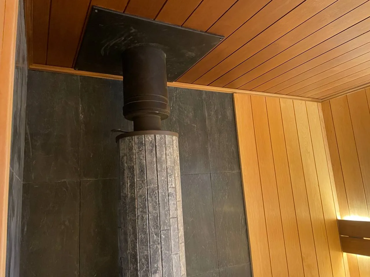 - Печь банная «Атмосфера » Талькохлорит ламель+сетка с тоннелем +Сетка-каменка ламель.Установлена в парной.Отделка Вагонка и полок - ольха и термоольха.